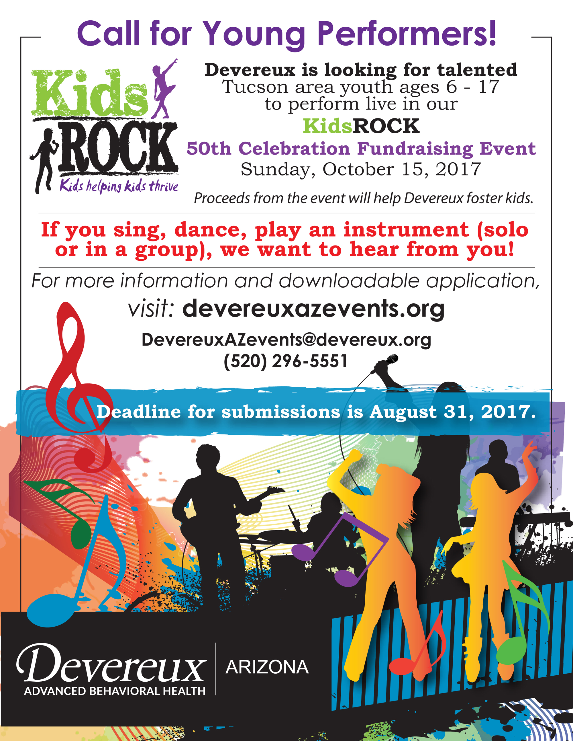 Devereux KidsROCK is looking for young performers! Devereux’s KidsROCK fundraiser will feature Tucson area children performing live, ​PLUS performances by local area cover bands, food, fun activities, and more! ​Proceeds from the event will go to Devereux’s HOPE for Kids Fund to benefit Devereux foster families.